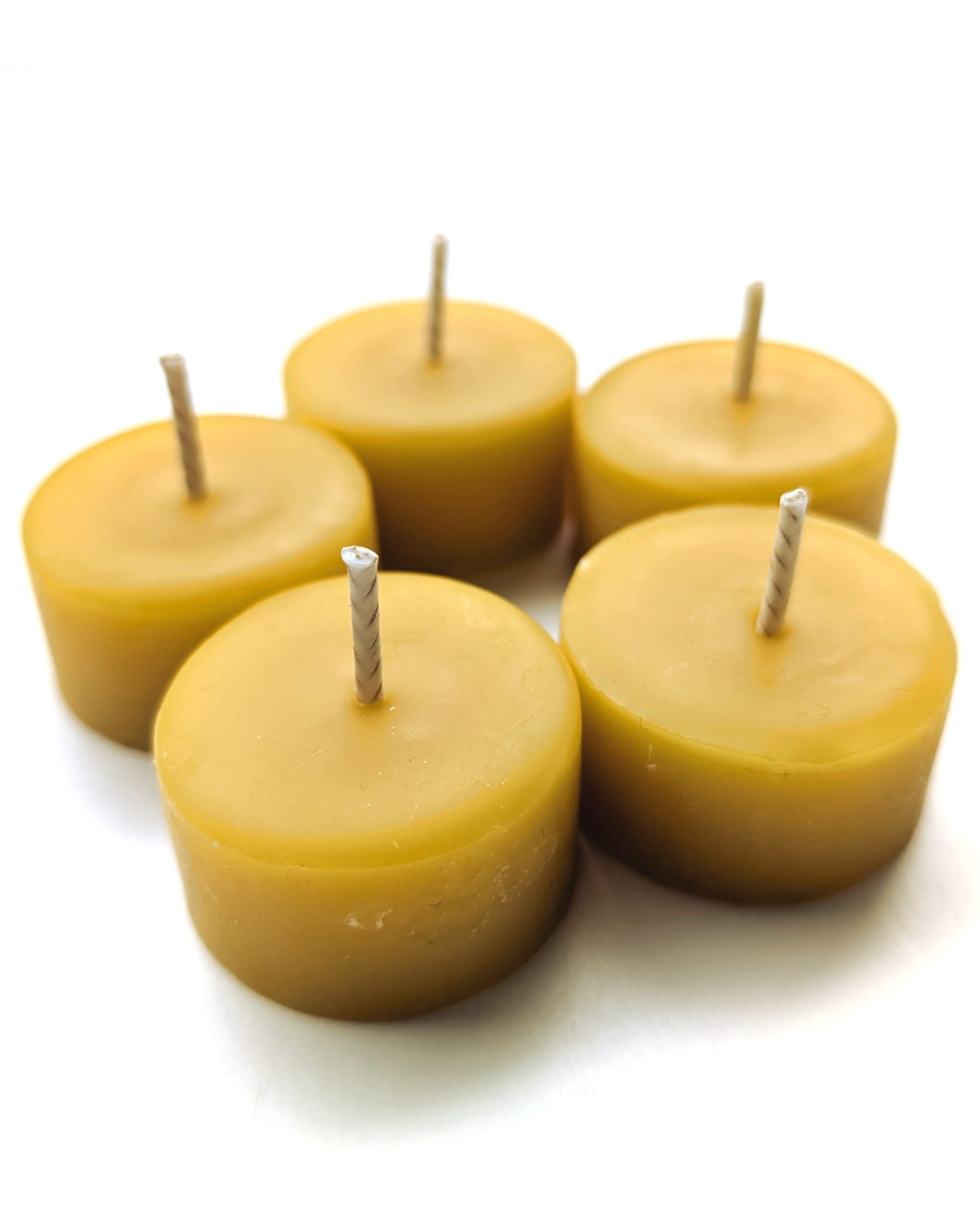 Mesilasvahast teeküünal. Võimalus tellida üksikult või 5-pakina. Ühe küünla põlemisaeg on ~5h.